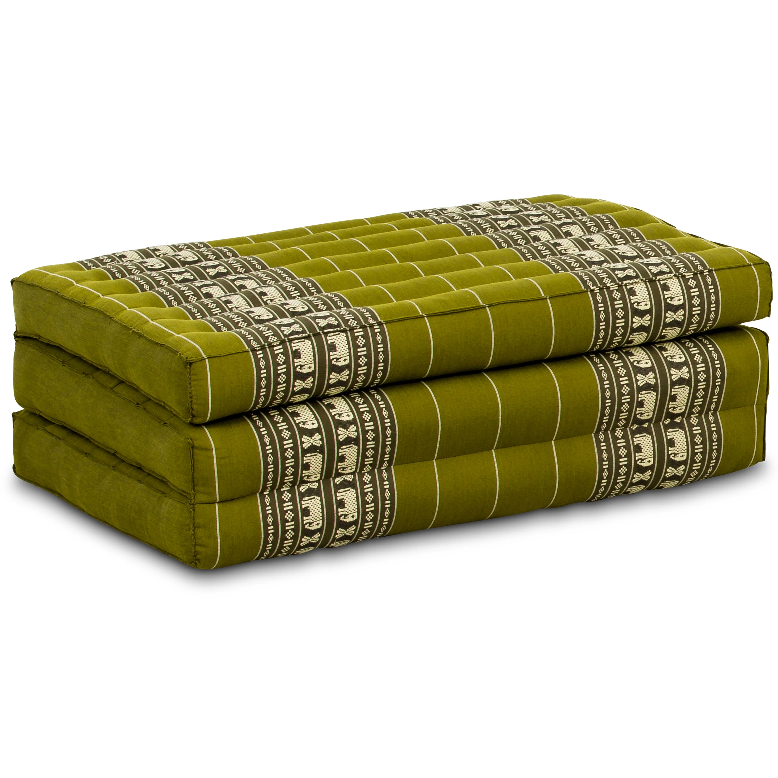 Die Klappmatratze speziell für Kinder überzeugt durch ihre praktischen Maße, die in jede noch so kleine Spielecke passen. Ihr buntes Thai-Design bringt Kinderaugen zum Strahlen und wirkt im Wohnraum dekorativ. Die Faltmatratze besteht aus drei klappbaren Segmenten, ist handgefertigt und der vielseitige Alltagsbegleiter für ein Kind. Durch die hohe Qualität begleitet die Faltmatratze jeden Entwicklungsschritt deines Lieblings – sogar auf Reisen. Die Wunder-Daune Kapok ist das Herzstück der Kinderklappmatratze. Die Kapokfüllung ist naturbelassen, damit dein kleiner Schatz sicher darauf ruhen, spielen und die Welt entdecken kann.