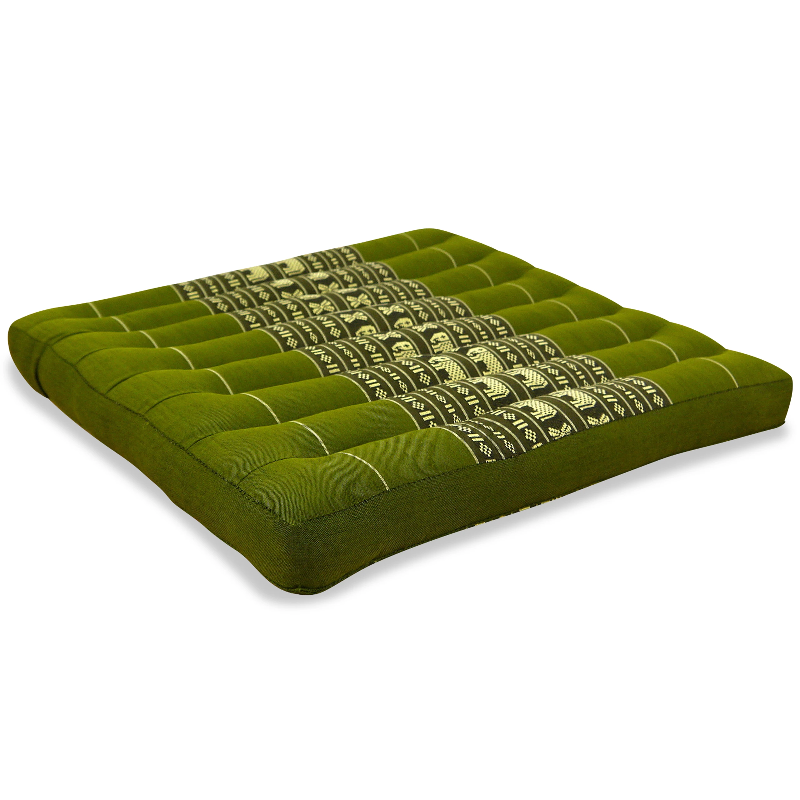 Ob als Sitzpolster für einen Stuhl oder eine Bank, als Bodensitzkissen für deine Hobbys oder als Polster für Palettenmöbel in deinem Garten – das praktische Sitzkissen ist vielseitig und handlich. In deinen vier Wänden ist es als bodennahe Sitzgelegenheit für dich und deine Gäste stets parat. So entstehen gemütliche Runden, ohne Minimalismus vermissen zu lassen. Auch draußen auf dem Boden, unterwegs beim Spazierengehen oder Campen und sogar auf dem Boot bieten die handlichen Kissen eine thailändische Sitzmöglichkeit. Die unbehandelte Füllung aus Kapok ist wasserabweisend, dadurch hat Bodenkälte keine Chance – und du genießt dein mobiles Sitzkissen