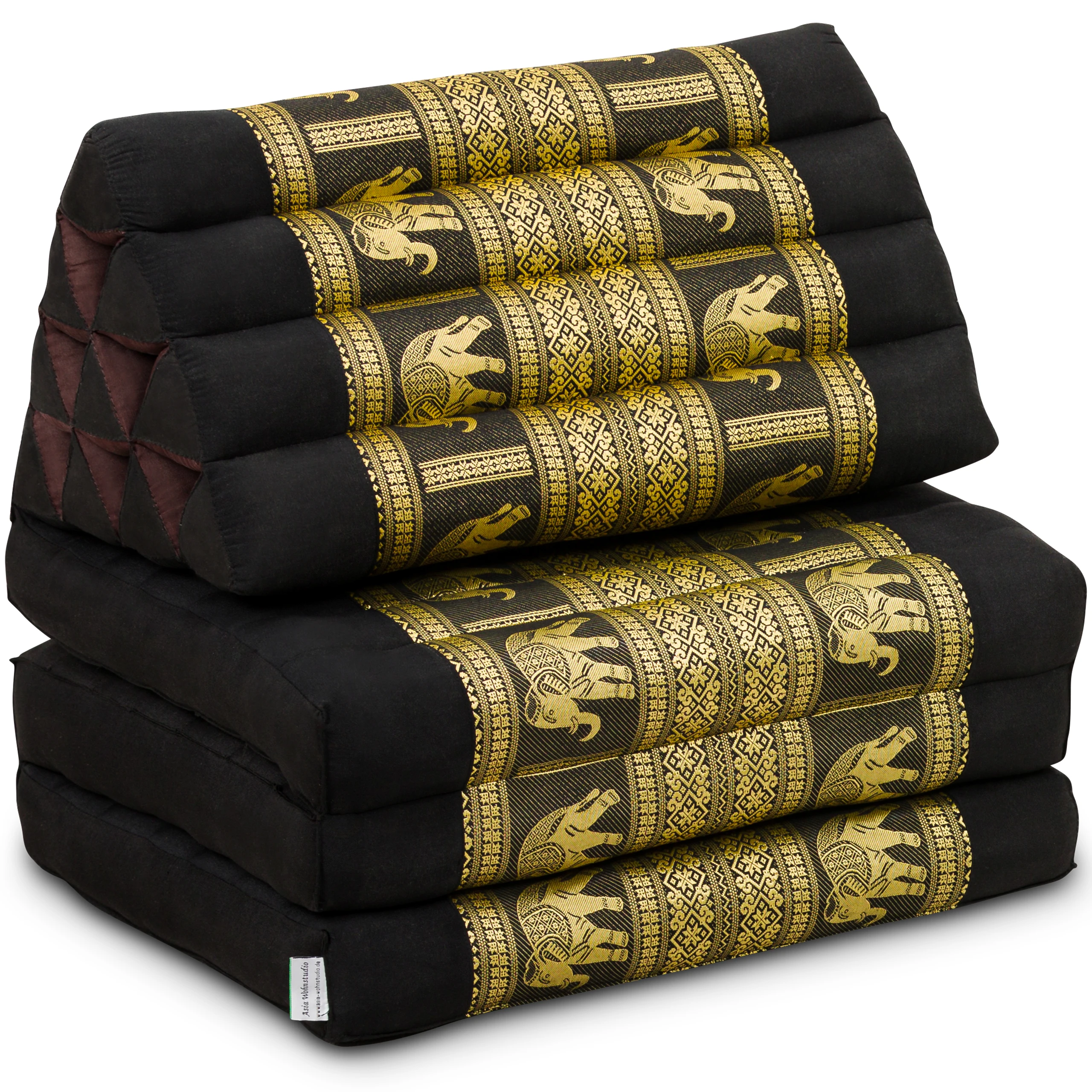 Kapok Thaikissen 3 Auflagen, Deluxe (Schwarz/Elefanten Seide)